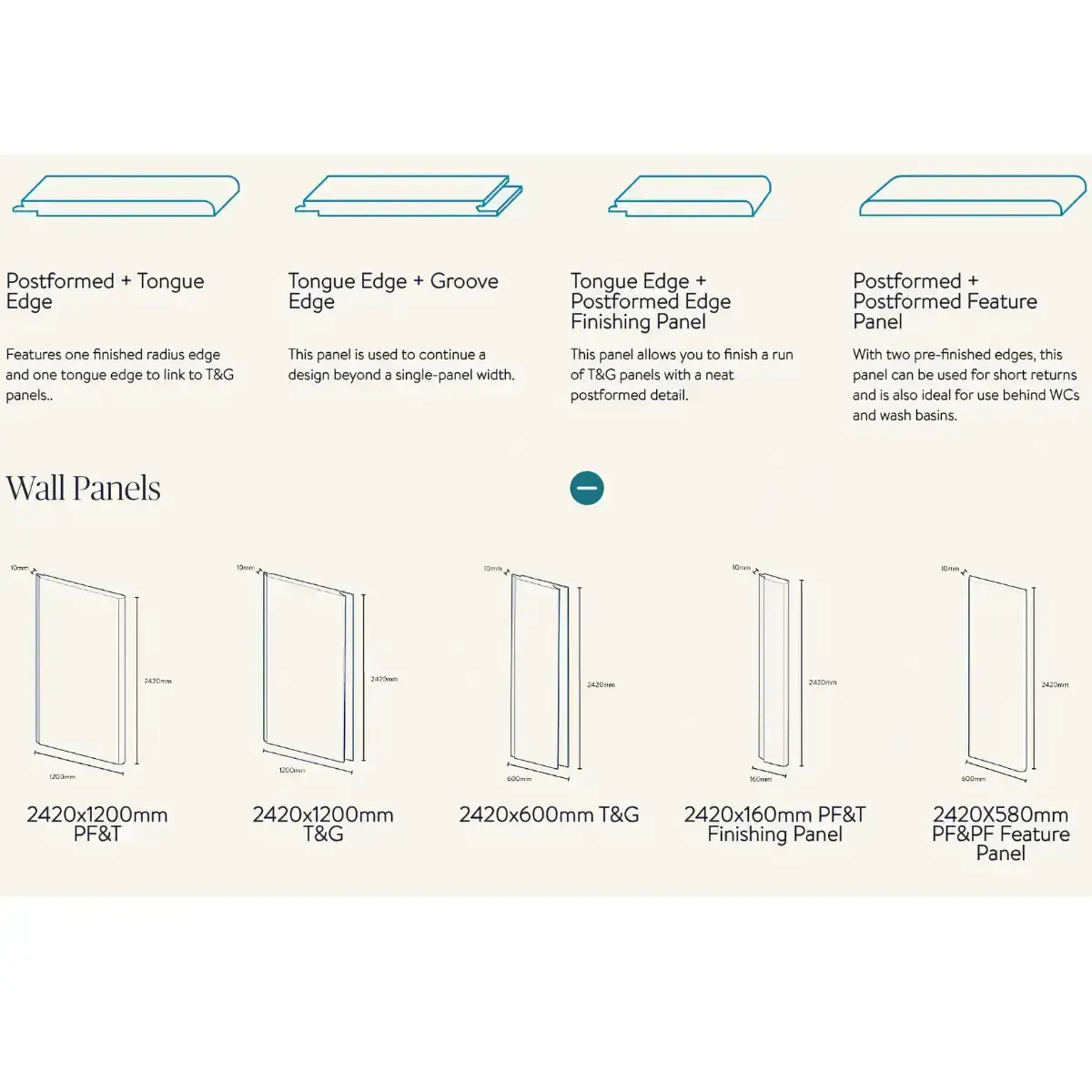 The post formed panels and the standard tongue and groove panels can be linked together to create walk-in wetrooms and work with any bathroom/shower enclosure.