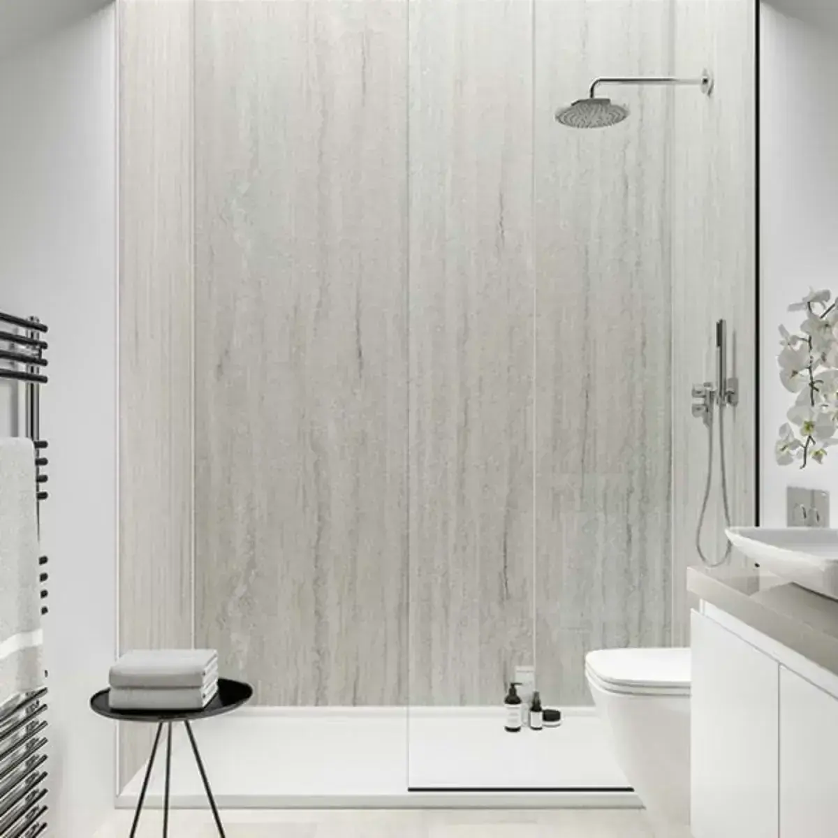 Elevate your interiors with the sleek and modern appeal of the Multipanel Jupiter Silver Contemporary Collection. Featuring a sophisticated silver-grey finish with subtle contemporary textures, this collection offers a refined and versatile aesthetic ideal for modern living spaces. Available in all panel sizes, these panels create a seamless, grout-free surface that blends stylish design with superior waterproof performance. Perfect for showers, splashbacks, and full wall installations, the Jupiter Silver Contemporary collection delivers durable, low-maintenance surfaces that enhance your space with understated elegance and contemporary flair.
