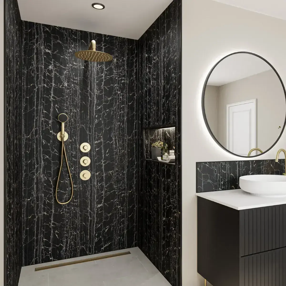 Wetwall Alloy Shower Panels - Nero Portoro Decor - All Panel Sizes